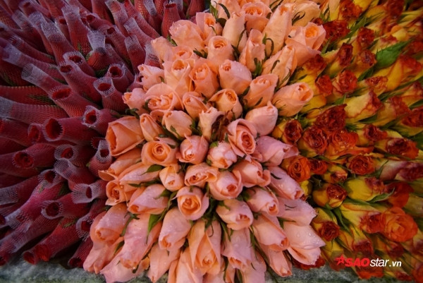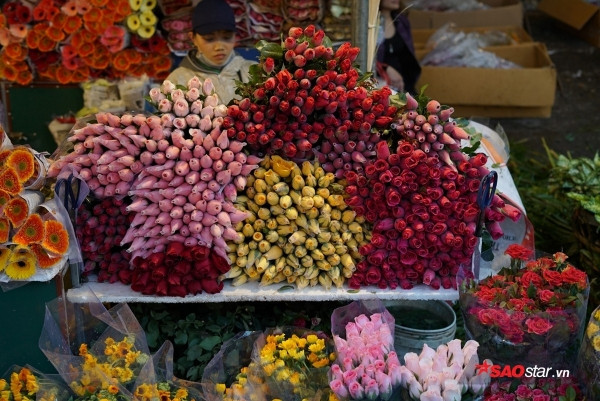 Hồng đỏ, hồng vàng, hồng phớt… được bán đầy chợ.