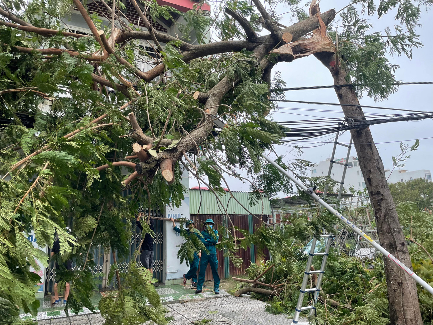 Video người dân và cán bộ địa phương tại Đà Nẵng dọn dẹp cây xanh bị gãy đổ sau bão Noru
