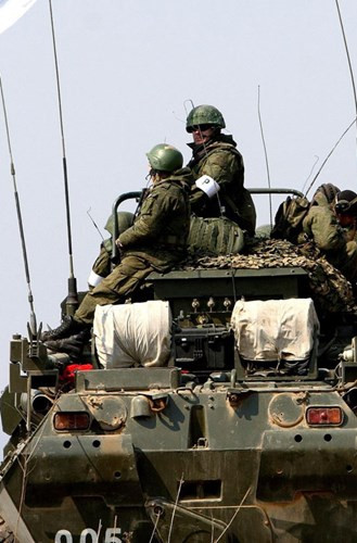 Xe bọc thép lội nước BTR-80 bắt đầu tiến công địch.