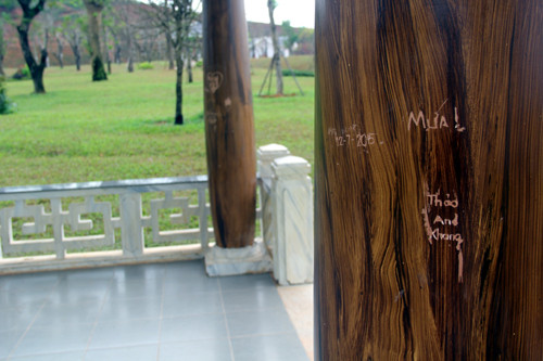 Theo ghi nhận, mặc dù đã được khắc phục, nhưng phần lớn trụ bêtông trong 18 nhà chờ thuộc quần thể tượng đài vẫn nham nhở hình vẽ, vết sơn chồng loang lổ. Nội dung chủ yếu là lời thề tình yêu như “anh mãi mãi yêu em”; “Danh yêu My”, các hình trái tim...