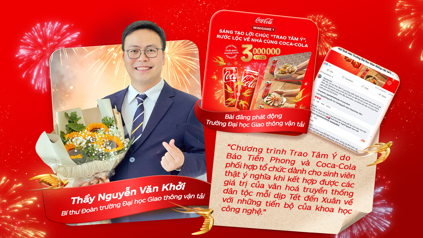 Để chắp cánh cho những lời tâm ý được tỏ bày đến những người thân yêu, Tết này, Báo Tiền Phong, Coca-Cola và 6 trường Đại học, Học viện đã phối hợp tổ chức cuộc thi sáng tạo và trao gửi những lời chúc Tết. Chiến dịch này đã nhanh chóng trở thành một trào lưu mới mẻ, nhận được sự đánh giá cao từ nhiều trường Đại học, Học viện. Đại diện của các trường đều chia sẻ sự hào hứng và ủng hộ mạnh mẽ với sáng kiến này, cho rằng chương trình không chỉ mang đến một sân chơi thú vị cho sinh viên mà còn giúp bảo tồn và phát huy những giá trị truyền thống trong bối cảnh hiện đại.