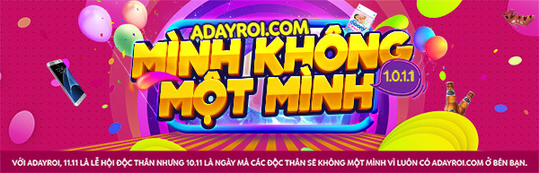 Ngày 11.11 được nhiều người coi là ngày lễ hội độc thân vì tính chất đặc biệt được tạo thành từ 4 số 1. Với quan điểm, càng độc thân càng phải… sành điệu, Adayroi tung ra chương trình khuyến mại lớn vào ngày 10.11 - ngày "Mình (1) không (0) một (1) mình(1)" với ý nghĩa, các “FA” sẽ luôn có Adayroi.com ở bên.