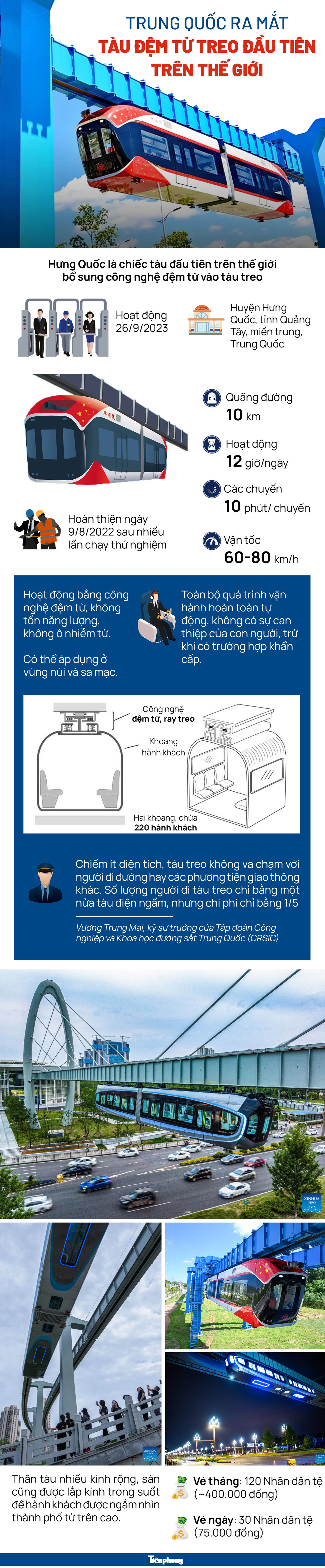 TPO - Trông như một sản phẩm khoa học viễn tưởng, tàu treo ngược có tên Hưng Quốc sử dụng công nghệ đệm từ đầu tiên trên thế giới đã được vận hành tại tỉnh Quảng Tây, miền trung, Trung Quốc.