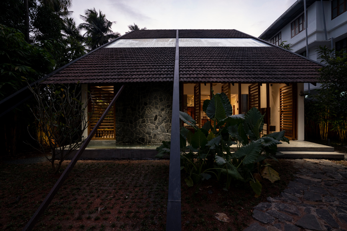 | Ngói bản địa được sử dụng để lợp mái và khung thép để hỗ trợ kết cấu. |