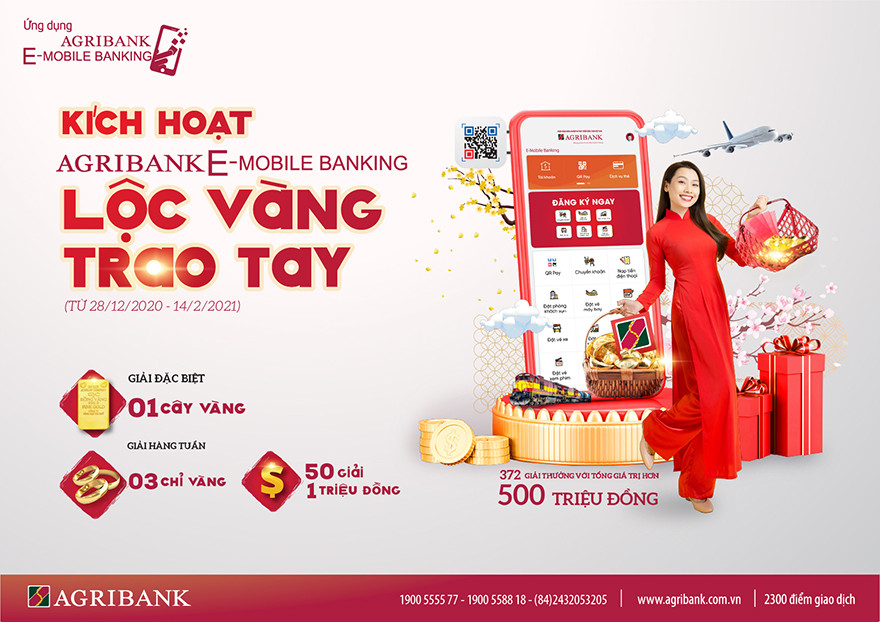 Theo đó, trong thời gian diễn ra chương trình, các khách hàng khách hàng đăng ký mới và kích hoạt dịch vụ Agribank E-Mobile Banking sẽ được tham gia 02 chương trình quay số trúng thưởng hấp dẫn: