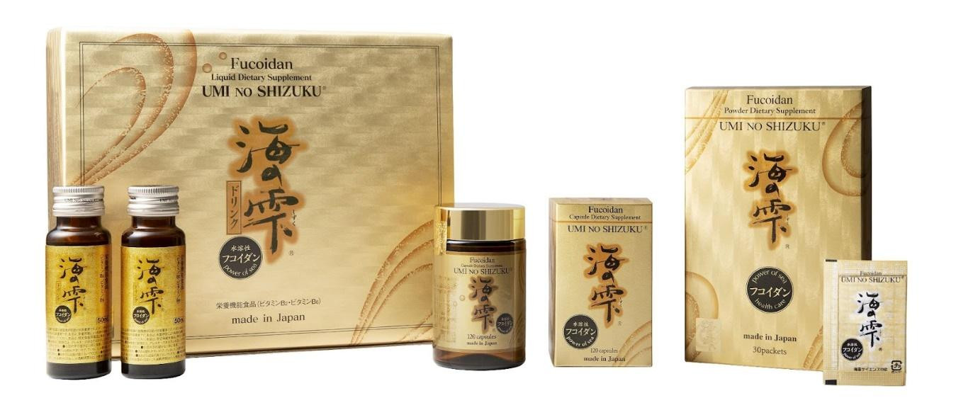 Có thể kể đến Umi No Shizuku - sản phẩm được chiết xuất từ tảo nâu Mozuku và tảo nâu nước lạnh Mekabu. Đây là 2 loại tảo giàu fucoidan, có tác dụng hỗ trợ chống viêm, kháng virus, điều hòa hệ miễn dịch và hỗ trợ người bệnh ung thư.