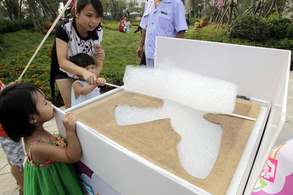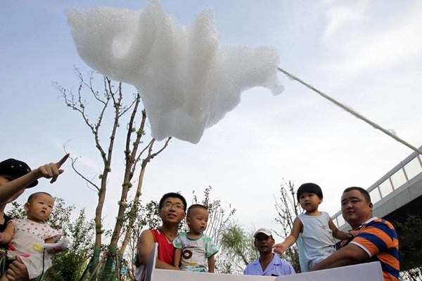 Nhờ việc kết hợp khí Heli với một dung dịch dạng bọt đã tạo ra những đám mây trắng, nhẹ và có thể bay cao hàng trăm mét trên không trung.