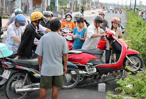 Để tránh kẹt xe, nhiều người rẽ vào đường Phạm Văn Đồng để ra hướng chợ Thủ Đức. Tuy nhiên, khi chạy đến sát cầu Gò Dưa thì bị đơn vị thi công bịt hết lối đi nên nhiều người đành quay lại lối ra đối diện trại cá sấu hoa cà. Không muốn quay lại điểm ùn tắc, họ đã khiêng xe qua dải phân cách để đi về hướng chợ Thủ Đức. Thấy vậy, một số hộ dân mang bục sắt ra kê lên dải phân cách cho người dân đi qua rồi thu mỗi lượt 2.000 đồng. Muốn nhanh chóng thoát cảnh kẹt xe, ai lỡ đi vào đường này đều móc túi trả tiền qua "cầu".