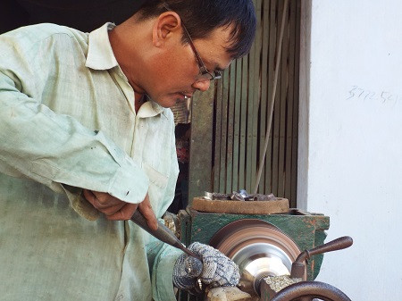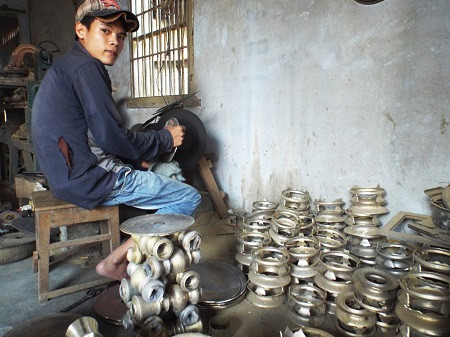 Cũng vào những ngày cận Tết, các hộ gia công sản phẩm sau đúc lại hối hả vào mùa. Những hộ này mua sản phẩm đúc "thô" rồi tiến hành gia công và bán ra thị trường. Ông Biện Ngọc Triều, một người có 30 năm làm nghề cho biết, “Mùa Tết năm nay, gia đình tôi cố gắng làm ngày làm đêm để có hàng cung ứng cho thị trường. Tính ra làm trong 2 tháng cũng kiếm được vài chục triệu đồng”.
