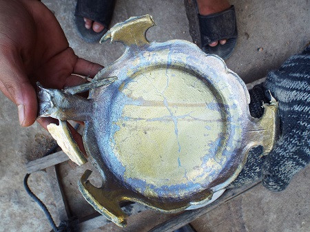 Những ngày cận Tết Bính Thân, PV Dân trí có mặt tại tàng nghề Phú Lộc Tây 1 và ghi nhận làng nghề đang hối hả đỏ lửa vào mùa đúc. Đây là làng nghề nức tiếng nhất ở Nam Trung Bộ chuyên về sản phẩm đúc đồng.