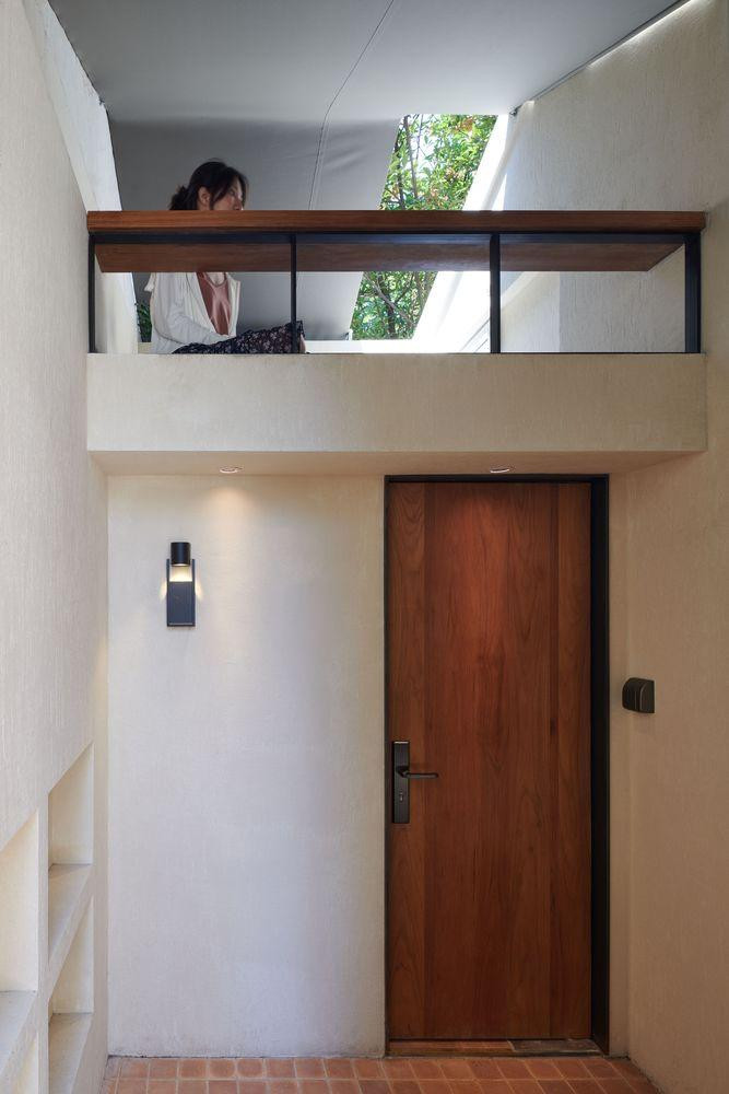 | Từ con ngõ nhỏ, mọi người sẽ bắt gặp lối vào nhà, thay vì dùng cửa các kiến trúc sư chỉ dùng rèm che ở khu vực lối vào để tạo sự thông thoáng. Cạnh lối vào nhà là khu vực bếp. Tiếp đến là không gian phòng khách và trong cùng không gian của 3 phòng ngủ xếp chồng lên nhau. |