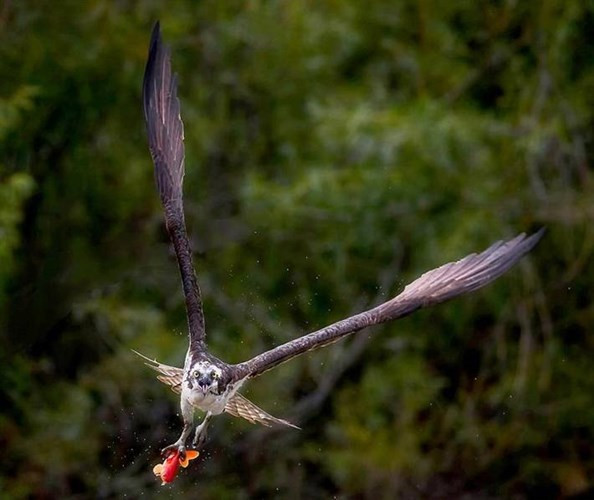 Tư thế đẹp mắt, con chim ưng biển hoàn thành màn săn mồi nhàn nhã của mình và duyên dáng bay về tổ thưởng thức thịt cá tươi ngon.