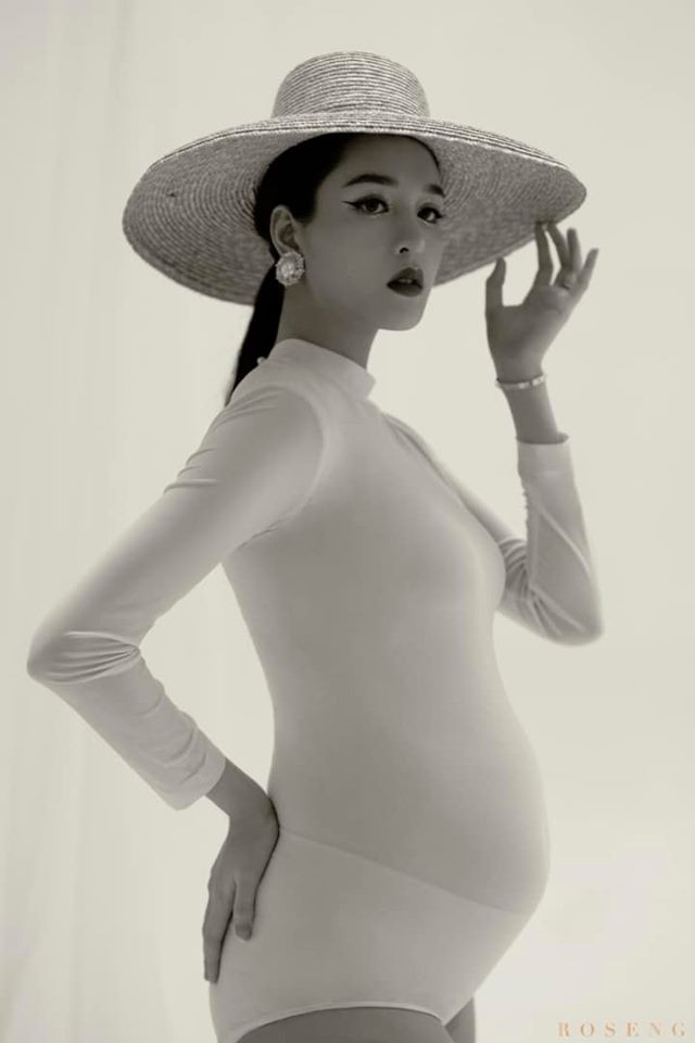 Á hậu Hoàng Anh xác nhận đang mang thai lần 2 ở tháng thứ 7 và tự tin khoe bụng bầu gợi cảm.
