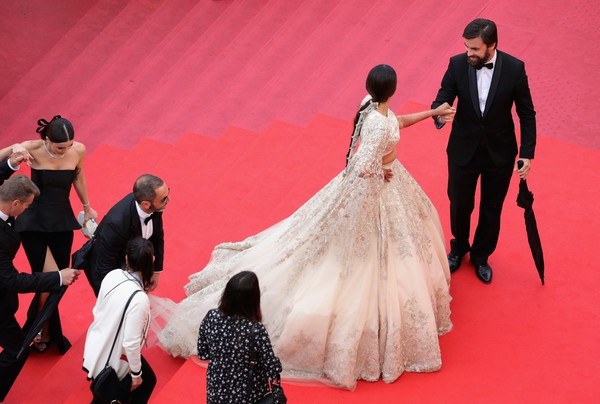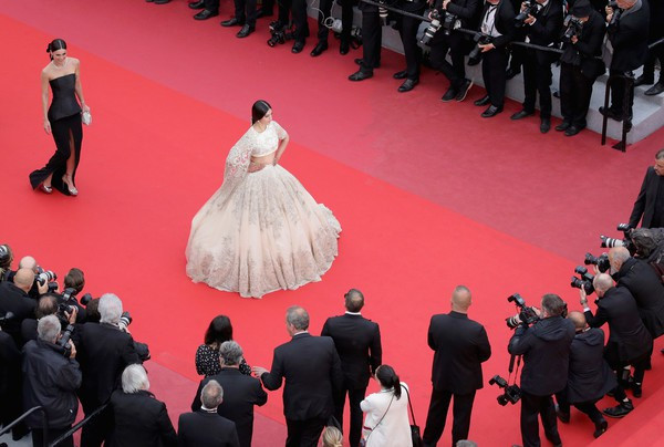 Minh tinh 33 tuổi trong váy áo truyền thống của phụ nữ Ấn Độ, vấn tóc buông dài xuất hiện như nữ thần đầy quyền lực trong buổi công chiếu phim Blackkklansman trong khuôn khổ liên hoan phim Cannes lần thứ 71