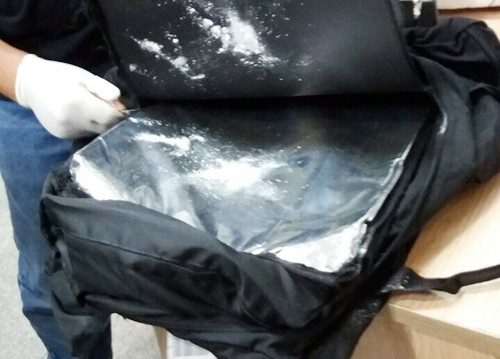 Kiểm tra túi xách màu đen của cô gái, họ phát hiện ngăn bí mật dưới chỗ để quần áo, tư trang. Rạch phần đáy túi, hải quan tìm thấy gói giấy bạc chứa bột trắng nặng hơn 1,6 kg. Giám định cho thấy đây là cocain.