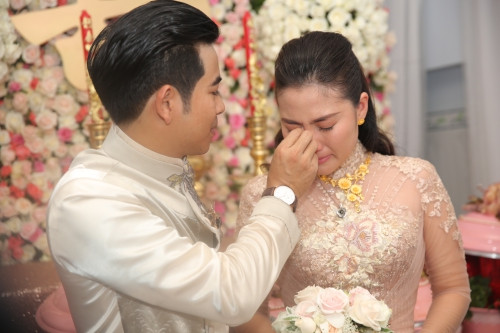 Thanh Bình an ủi, lau nước mắt cho vợ và nói lời cảm ơn mẹ vợ đã tác hợp cho họ.