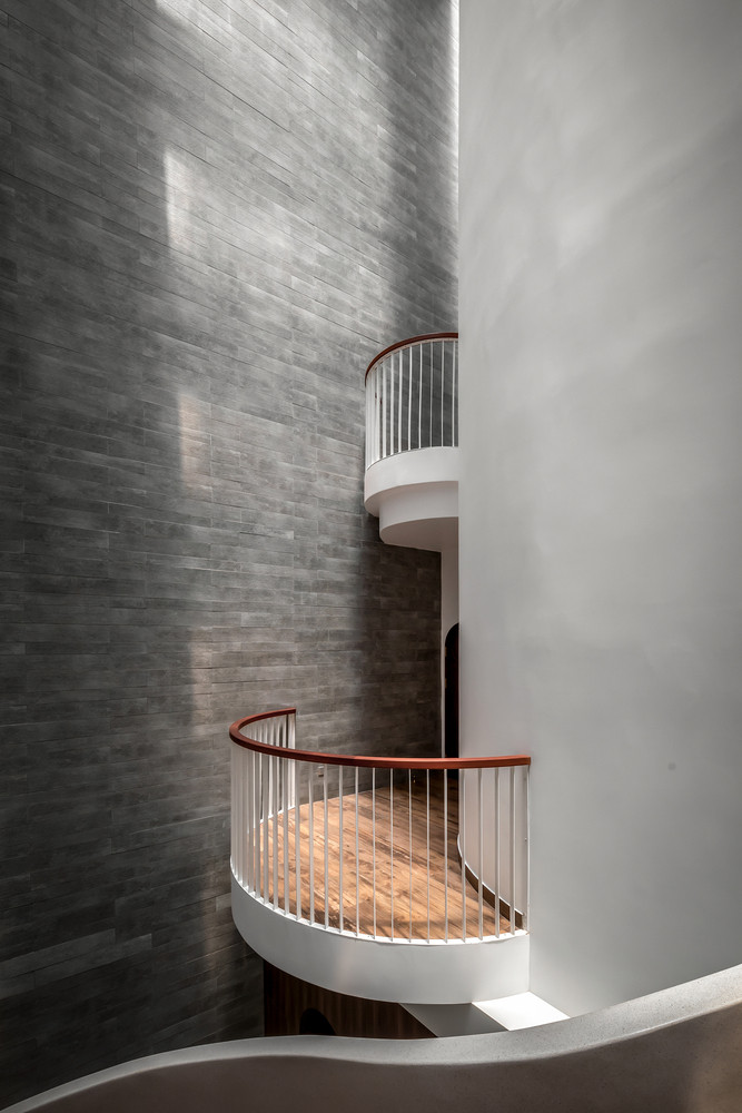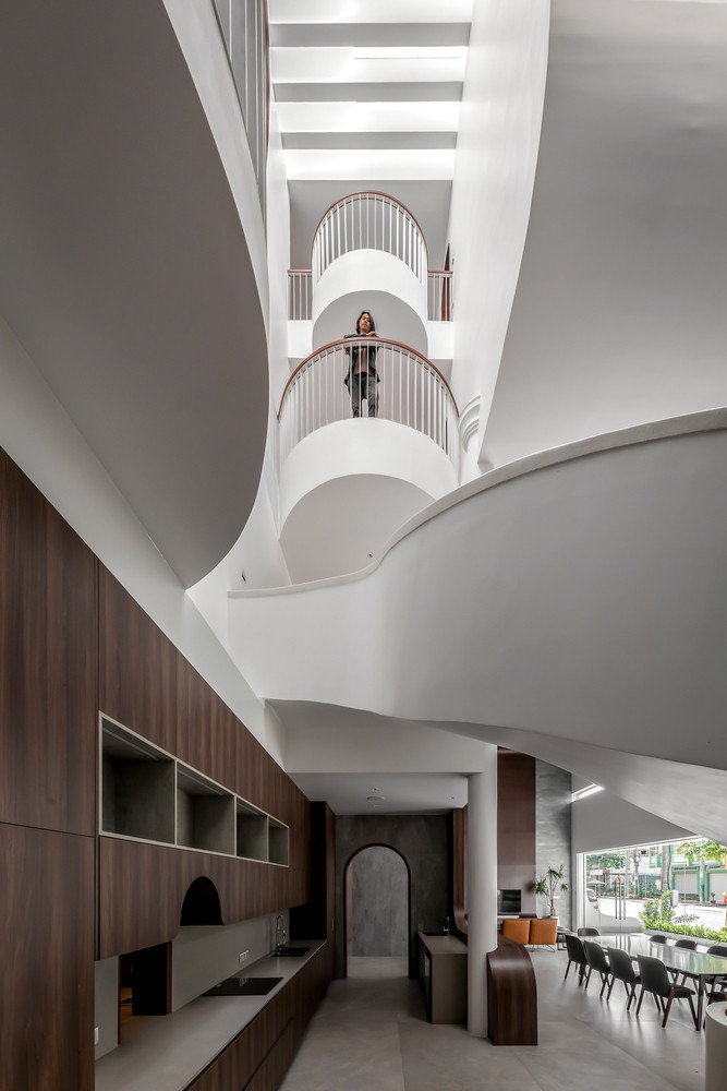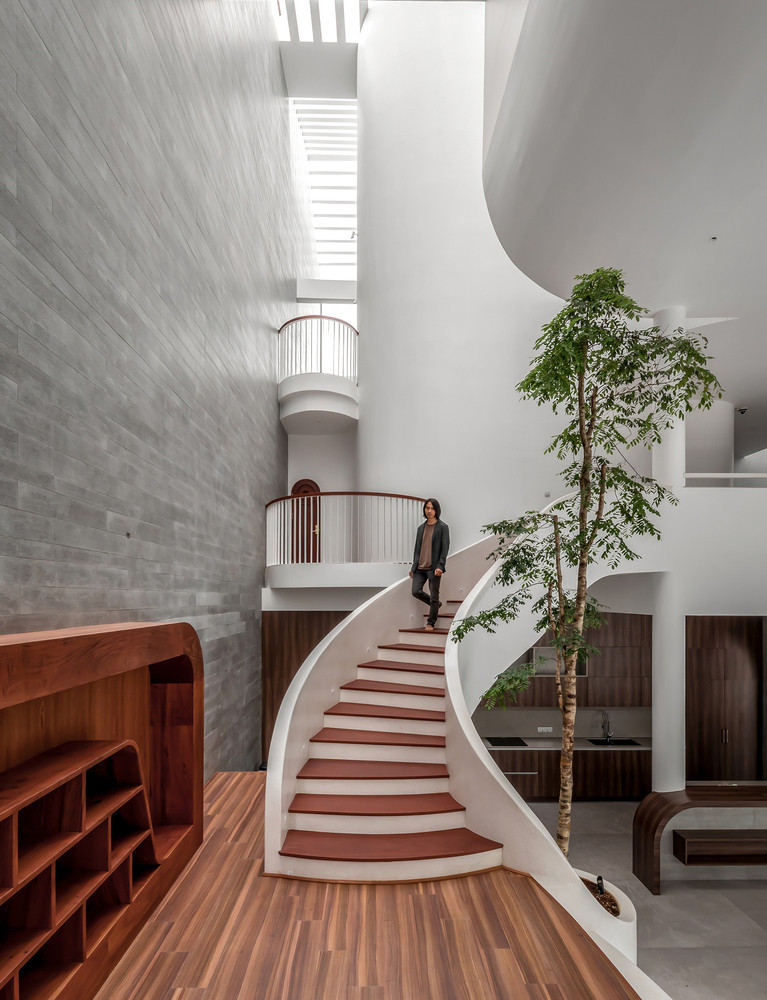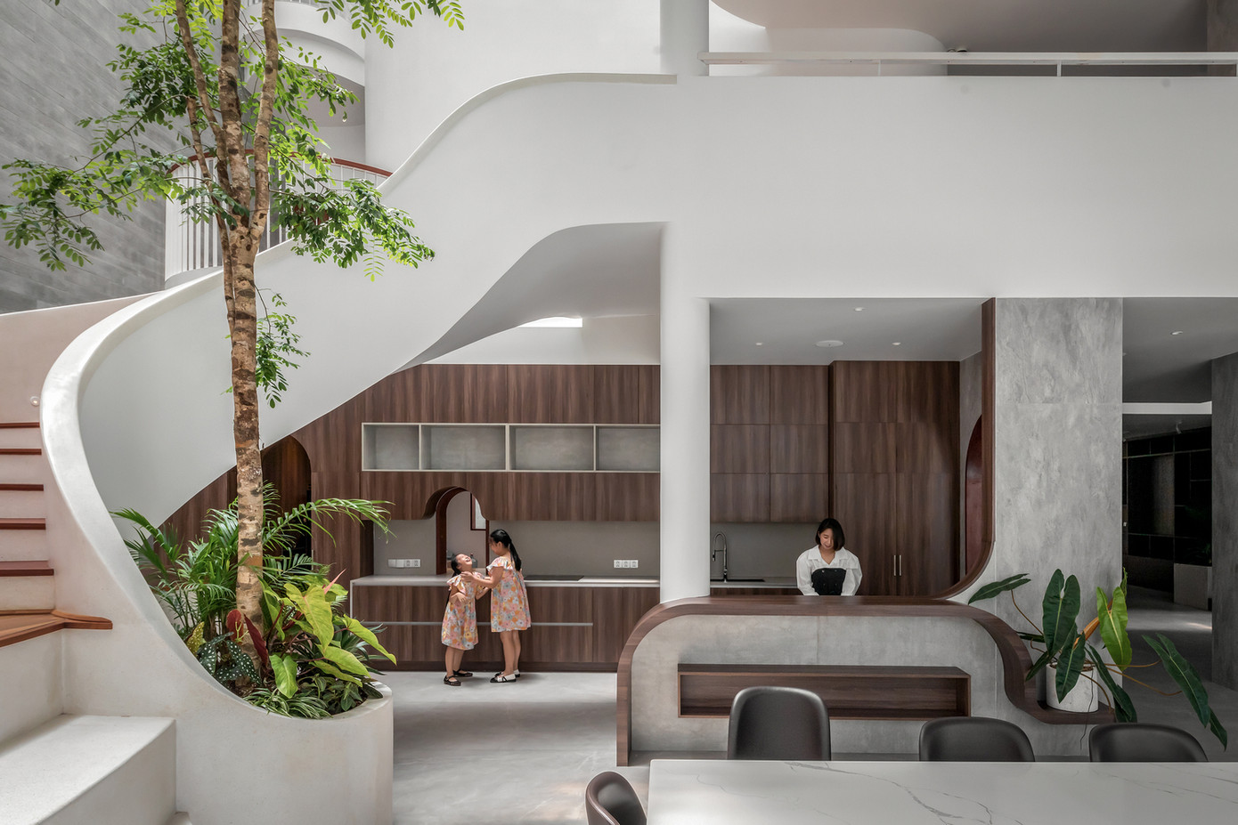 Để tạo nên sự đồng nhất trong không gian, các khu vực khác trong nhà cũng sử dụng cùng nhịp điệu thiết kế với các đường cong, lượn sóng mềm mại.