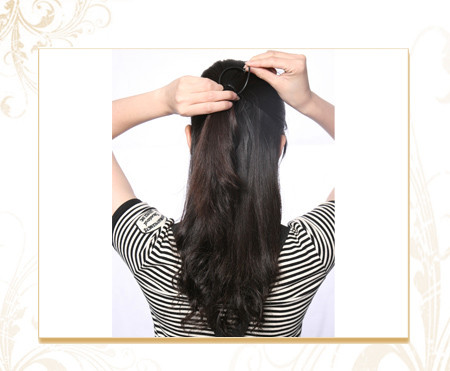 Tiếp theo, bạn dùng chun cột toàn bộ mái tóc lại, thành kiểu tóc đuôi ngựa.