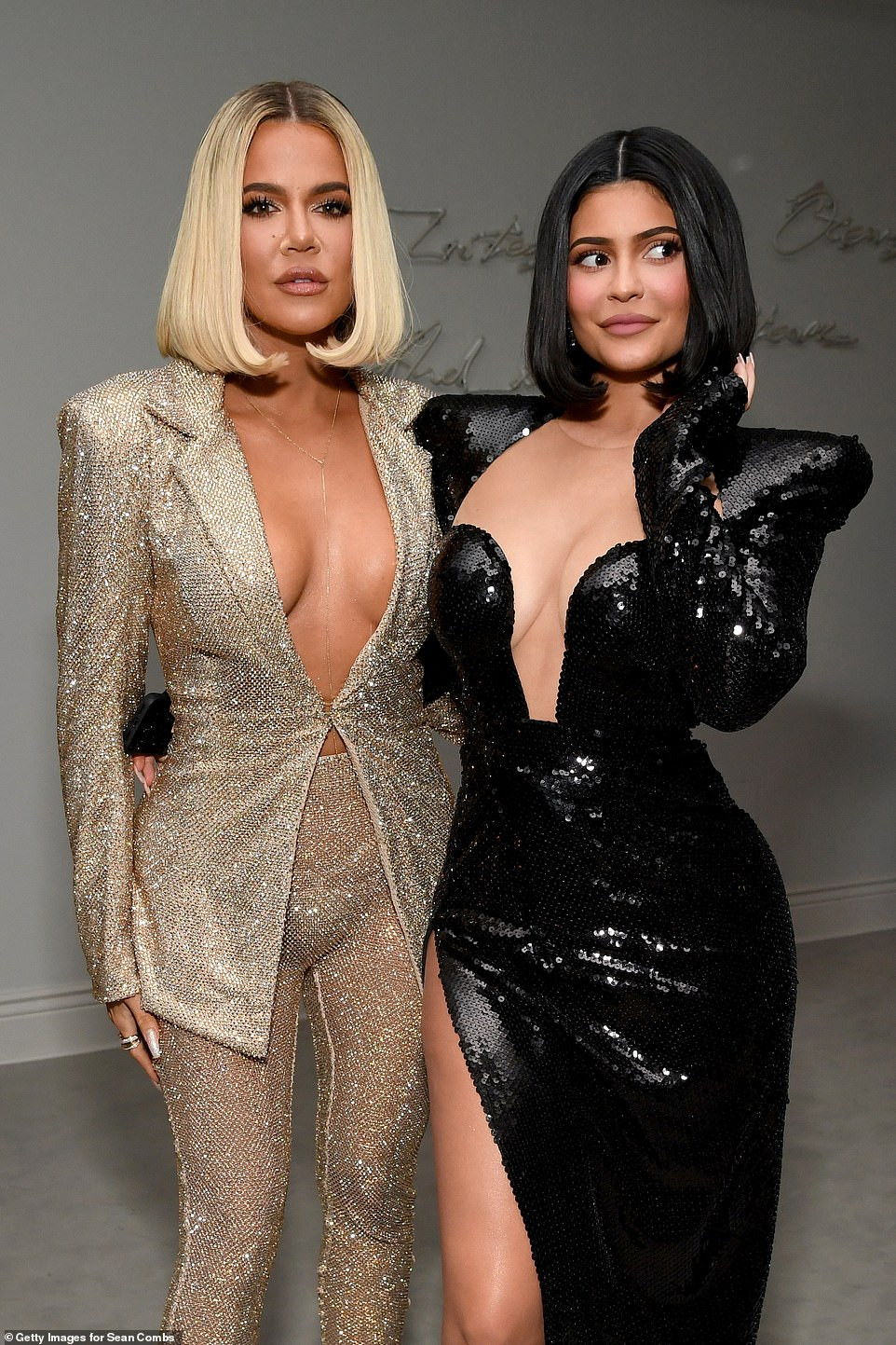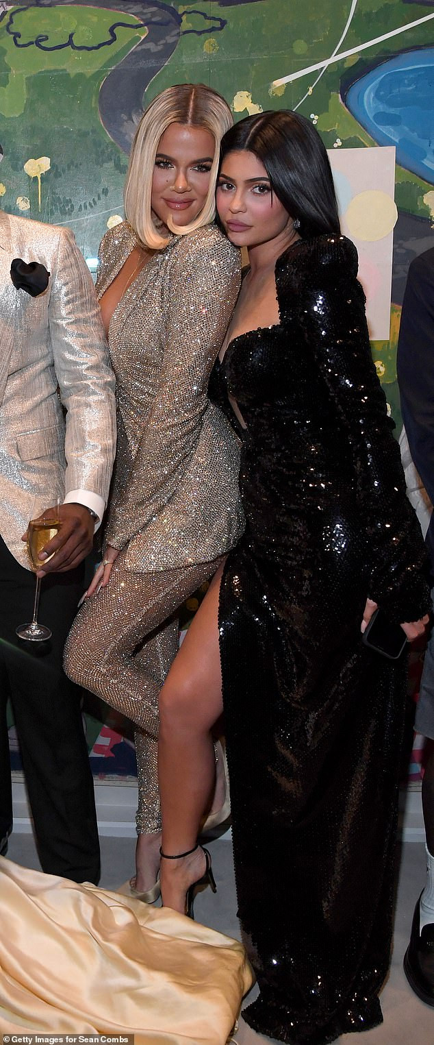 Nếu Kim chọn phong cách thanh lịch, trang trọng, hai em gái là Khloe và Kylie nóng bỏng, nổi bật hơn với trang phục sequin lấp lánh.