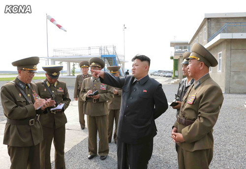 Truyền thông Triều Tiên hôm qua tiết lộ những hình ảnh trong chuyến thị sát căn cứ không quân và đơn vị Phòng không 447 ở tỉnh Pyongan Nam của nhà lãnh đạo Kim Jong-un. Ảnh: Sina