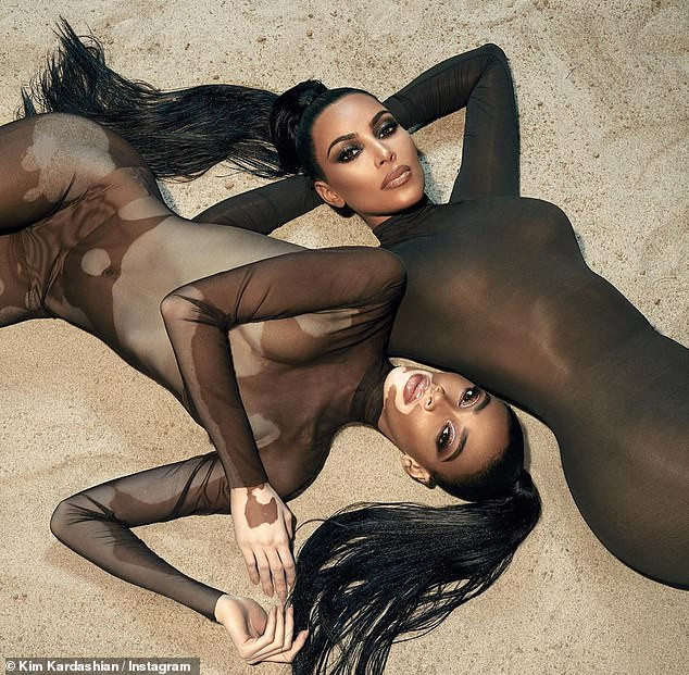 Kim Kardashian và người mẫu Winnie Harlow diện bodysuit bó sát xuyên thấu khoe eo bé xíu và đường cong nảy nở.