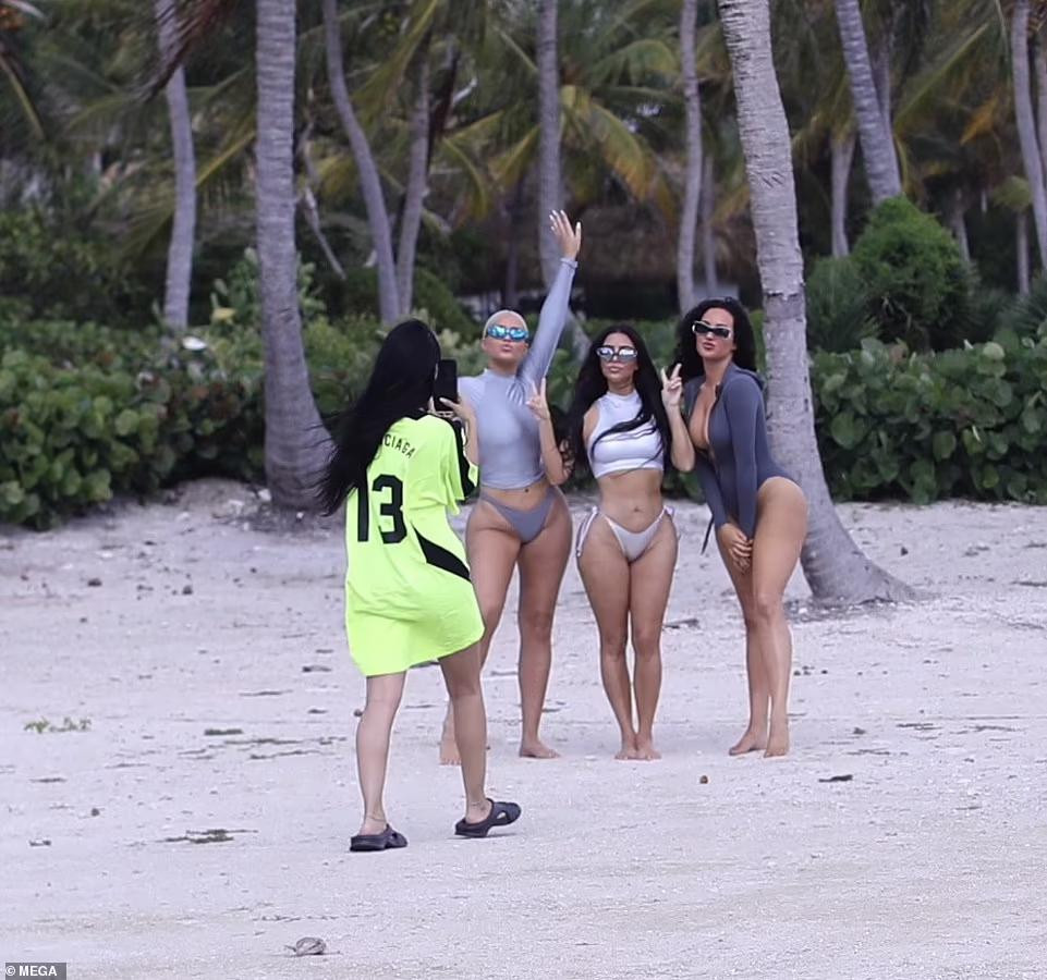 | Họ đều mặc những mẫu thiết kế áo tắm của vợ cũ rapper Kanye West. |