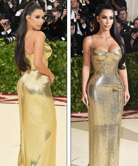 Bộ váy của Kim mang đậm cảm hứng từ váy mà nhà thiết kế Donatella Versace diện trong bữa tiệc mừng kỷ niệm lần thứ 100 của tạp chí Vogue Mỹ hồi năm 1993, do chính anh trai Gianni của bà thiết kế.