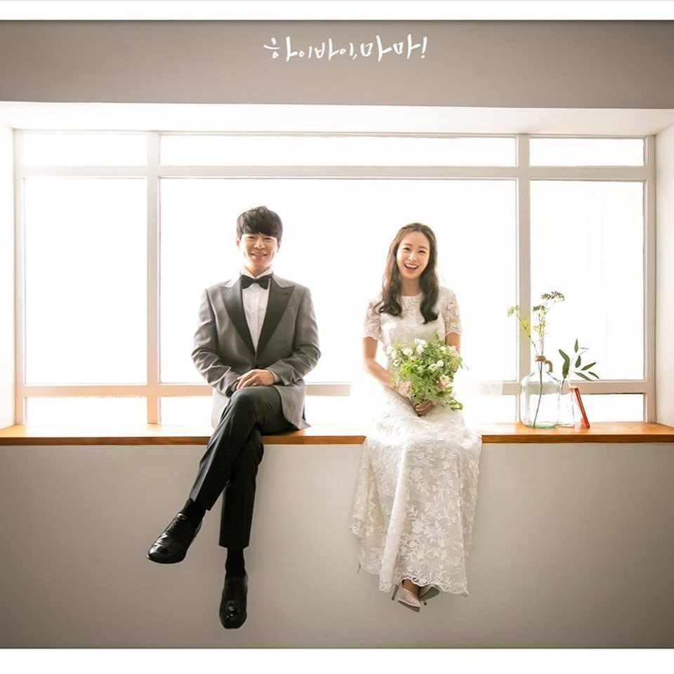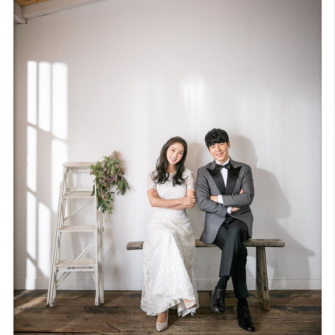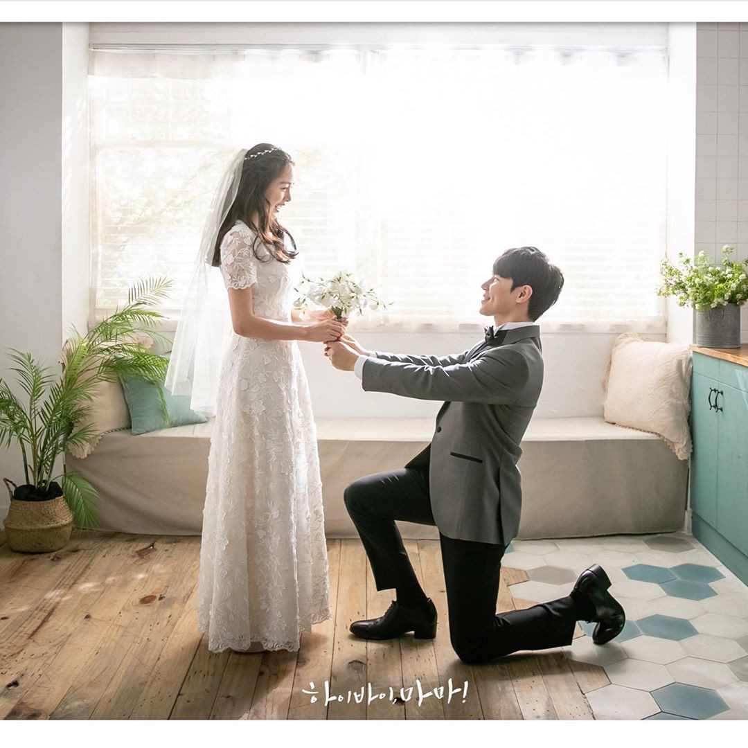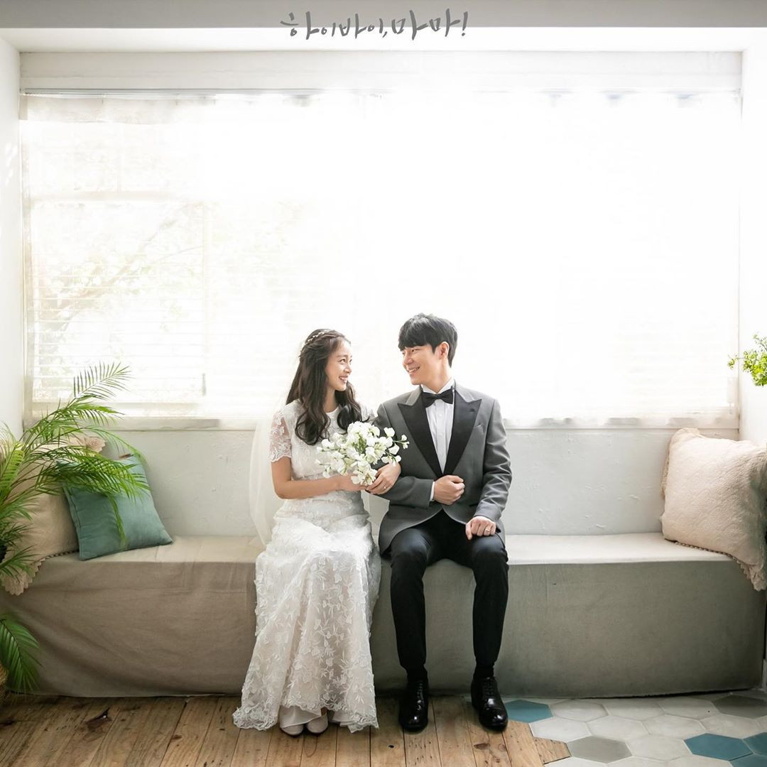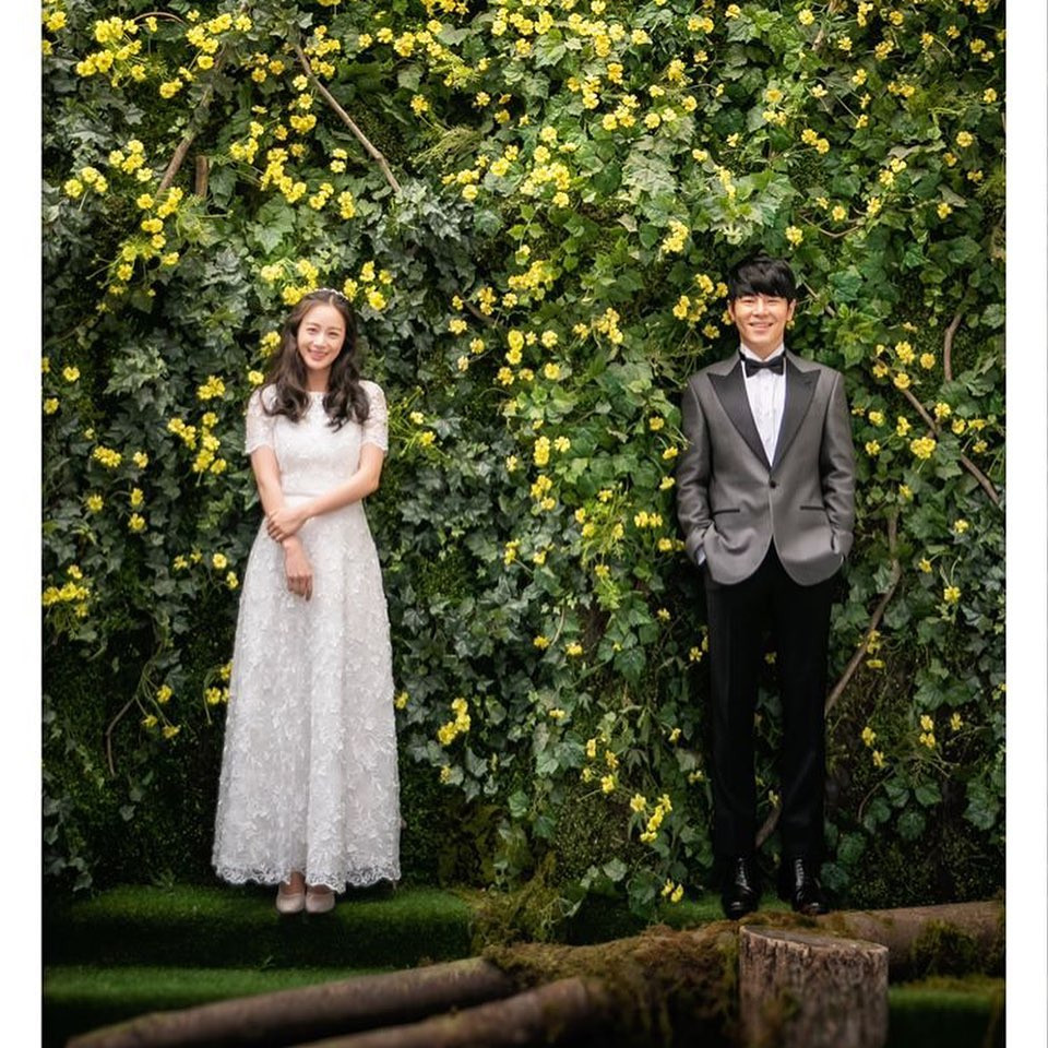 Trong loạt ảnh, Kim Tae Hee mặc váy cưới dài thướt tha màu trắng, sánh đôi bên "chồng trên phim" Lee Kyu Hyung.