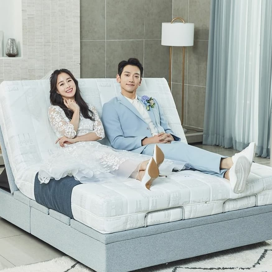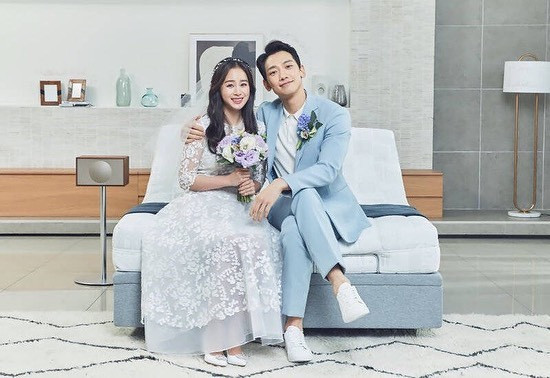 Mới đây, vợ chồng Kim Tae Hee - Bi Rain cũng mặc đồ cô dâu chú rể trong clip quảng cáo mới.