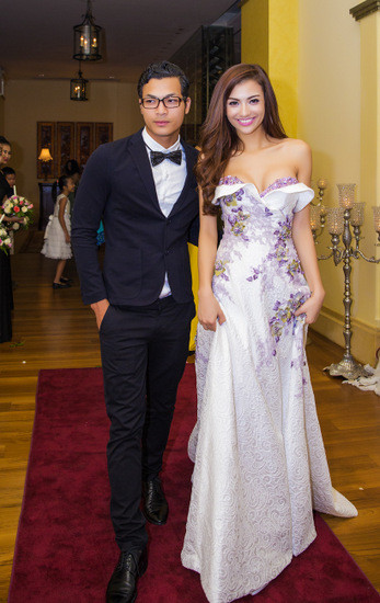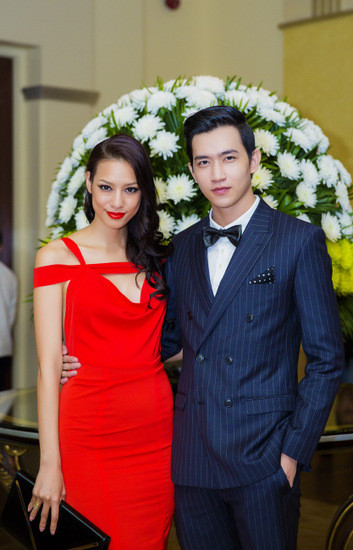 Hồng Quế đi sự kiện cùng người mẫu Tuấn Việt. Cô diện đầm có thiết kế cách điệu cầu kỳ nơi ngực áo của Hoàng Hải.