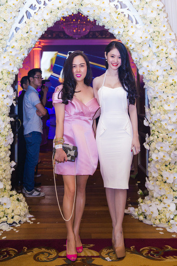 Linh Chi chọn một mẫu váy cúp ngực ôm sát, với điểm nhấn là chiếc dây cổ yếm đính ngọc trai trang nhã.