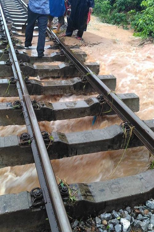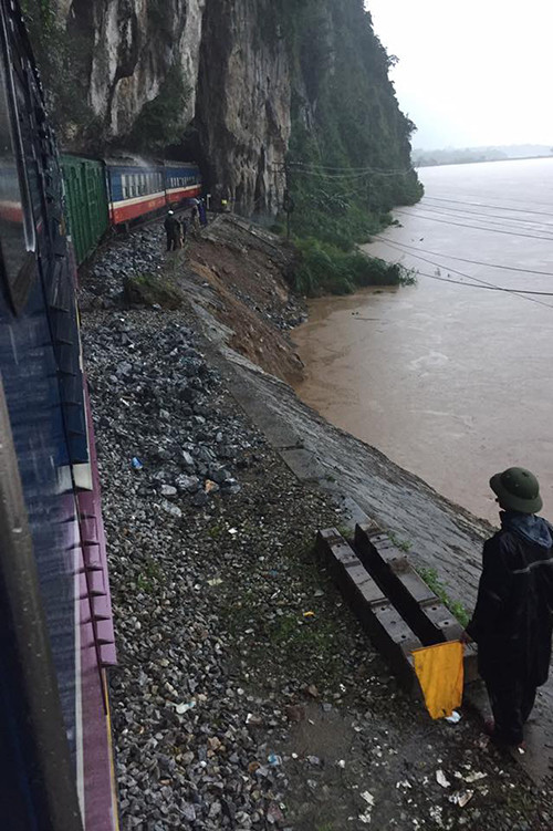 Đường sắt bắc nam đoạn qua Quảng Bình có 11 điểm sạt lở. Nhiều nơi nước làm trôi đá nền đường dưới thanh tà vẹt, có đoạn ngập đường ray đến 10 cm.