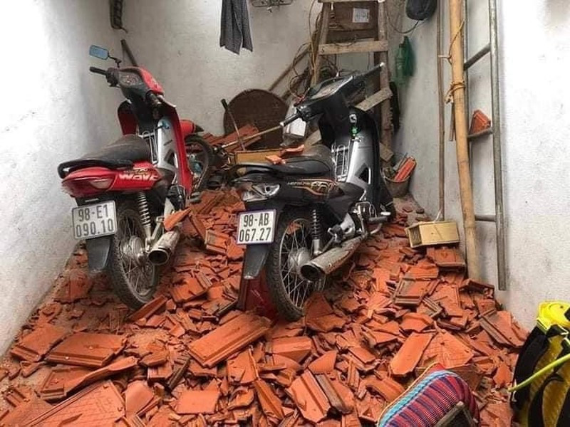 Ngói trên mái nhà sập xuống khu vực để xe.