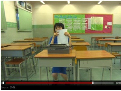| Tsang Tsz-Kwan - cô gái khiếm thị đọc chữ nổi bằng môi - Ảnh chụp màn hình từ bản tin của đài CNN (Mỹ). |