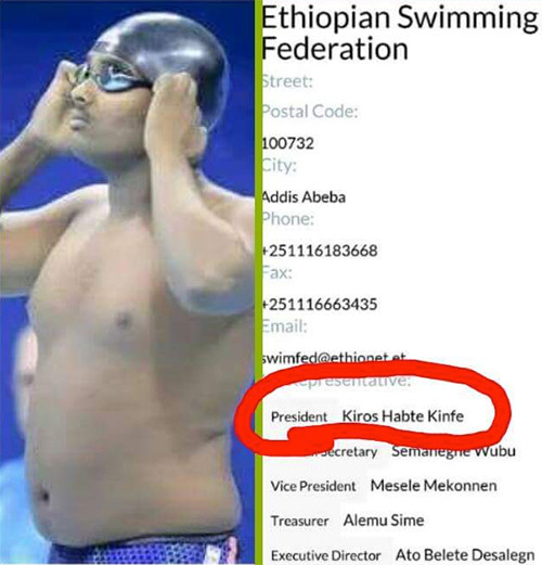 VĐV 24 tuổi này là con trai của Chủ tịch Liên đoàn bơi lội Ethiopia.