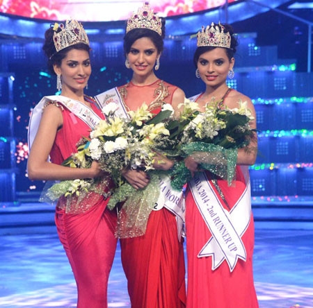 Jhataleka Malhotra (trái) giành ngôi Á hậu 1 và Gail Nicole Da Silva giành ngôi Á hậu 2.