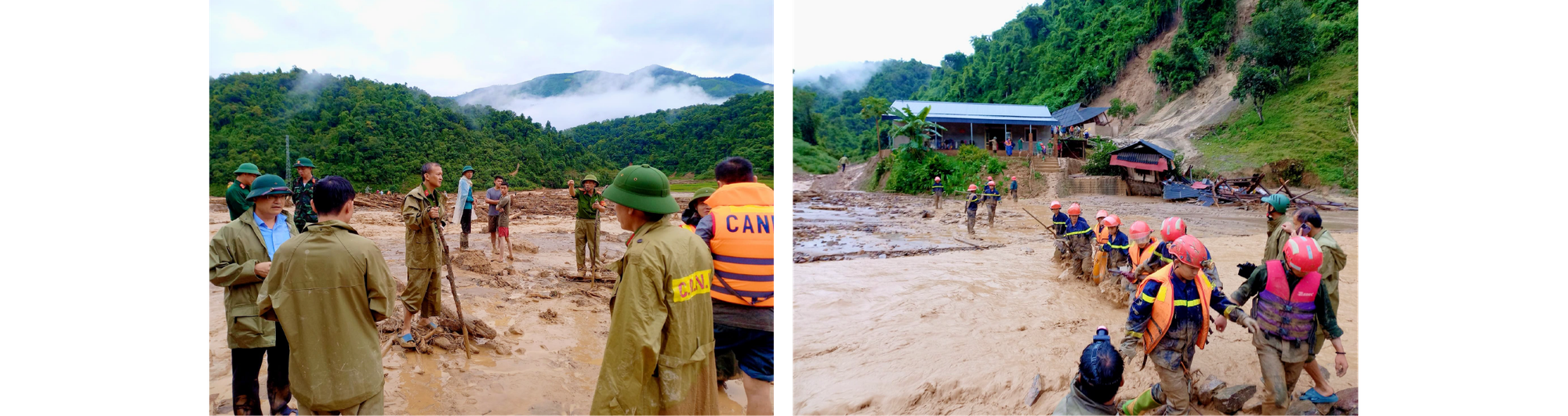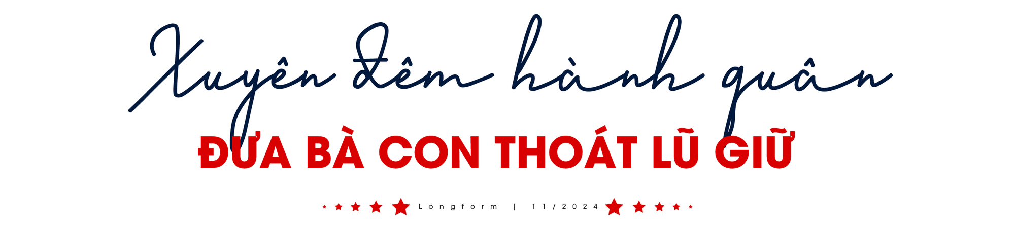 “Tin báo lũ quét về trong chớp nhoáng, trời tối mịt, chúng tôi chưa thể nào hình dung được mức độ tàn phá mà lũ để lại. Nước bắt đầu dâng, trời tối. Từng tiếng gọi nhau hô hoán sơ tán vang lên trong sự hoảng loạn. Đêm tối che khuất tầm nhìn, chúng tôi lần mò qua từng ngôi nhà, từng lối đi nhỏ, cõng trên lưng những người già, dìu trẻ em, đưa từng người dân ra khỏi vùng nguy hiểm”, Thượng tá Sơn nhớ lại.
