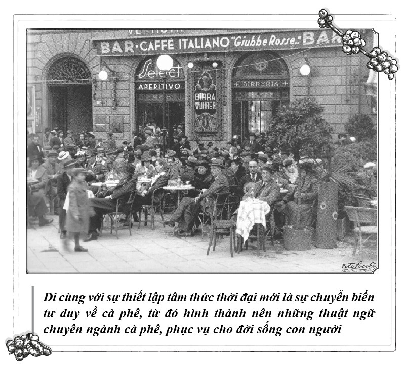 Không chỉ góp phần làm phong phú thêm vốn ngôn ngữ của nhân loại, những khái niệm, từ ngữ, thuật ngữ mới này đã tạo nên những nét văn hóa đặc trưng của nhiều quốc gia, dân tộc. Theo đó, các khái niệm ấm Moka, cà phê Espresso, Cappuccino, Mocha, Latte… hay bộ quy tắc phục vụ và thưởng thức cà phê Galateo del Caffè… đã định hình văn hóa cà phê nước Ý gắn liền với những tiêu chuẩn và ứng dụng cao về kỹ thuật. Trong khi đó, La Débelloire - hệ thống thẩm thấu cà phê đầu tiên, French Press - dụng cụ pha cà phê kiểu Pháp, Café filtré - cà phê túi lọc... mang dấu ấn văn hóa thưởng thức cà phê tinh tế của Pháp. Khái niệm “Instant Coffee” – cà phê hòa tan, hay “Coffee break” - nghỉ giải lao cà phê, mang màu sắc của nền văn hóa cà phê Mỹ năng động, hiện đại.