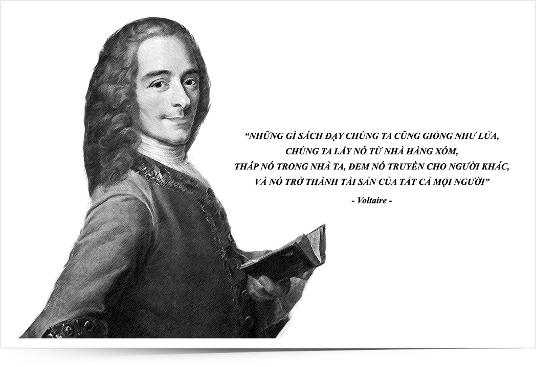 Bên tách cà phê, Voltaire đọc, nghiên cứu và viết miệt mài trên mọi thể loại văn học kịch, thơ, tiểu thuyết, tiểu luận, luận bàn lịch sử, khoa học… Ông là học giả người Pháp tiên phong nghiên cứu về sự tiến bộ của nền văn minh thế giới trong bối cảnh toàn cầu, những thành tựu nghệ thuật, khoa học bắt nguồn từ nghiên cứu thực tiễn, loại bỏ các yếu tố thần học. Voltaire đã viết hơn 2.000 đầu sách lớn nhỏ cùng 20.000 thư tay như cách để phổ biến tri thức. Voltaire tin rằng dùng sức mạnh tri thức để giáo dục quần chúng sẽ đạt được sự tiến bộ xã hội. Ông từng khẳng định “Càng hiểu biết, con người càng tự do - Plus les hommes seront éclairés, et plus ils seront libres”.