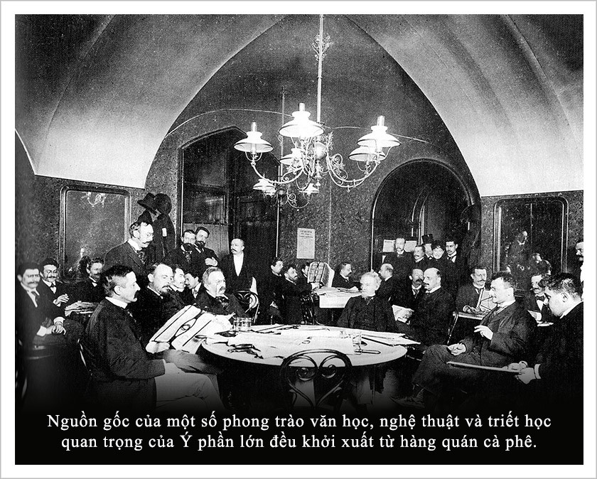 Những nhà tri thức Ý nhận định rằng, quán cà phê Ý chính là nơi “văn hóa tạo ra văn hóa”. Từ khi xuất hiện tại Ý, trong suốt nhiều thế kỷ, hàng quán cà phê là không gian chuyển tải câu chuyện lịch sử, văn hóa. Đặc biệt, quán cà phê đã giữ vai trò rất quan trọng trong quá trình đổi mới tư tưởng chính trị, nghệ thuật, kinh tế… tạo nên những bước ngoặc tái định hình văn hóa Ý, phong cách Ý, góp phần tạo nên một quốc gia Ý bản sắc như ngày nay.