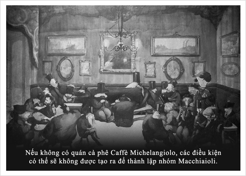 Trong thời kỳ thống nhất quốc gia (Risorgimento), Ý chịu sự thống trị của các cường quốc châu Âu. Từ vị trí lãnh đạo văn hóa và nghệ thuật của châu Âu, Ý trở thành quốc gia bị phân chia không có bản sắc nghệ thuật riêng. Chính giai đoạn này, hàng quán cà phê cũng là nơi những con người mang tinh thần bất khuất của thời đại nuôi dưỡng lý tưởng và thực hiện những cuộc tái tạo vinh quang quốc gia. Quán Caffè Michelangiolo ở Florence là nơi những họa sĩ Ý khởi xướng phong trào nghệ thuật Macchiaioli khơi dậy nghệ thuật Ý, thể hiện tinh thần dân tộc chủ nghĩa thông qua việc sáng tạo phong cách nghệ thuật mới dựa trên những thành tựu nghệ thuật lâu đời của Ý. Vài thập kỷ sau, quán cà phê Caffè delle Giubbe Rosse được vinh danh là “fucina di sogni e di passioni” (nơi rèn giũa những ước mơ và đam mê) cũng là nơi Chủ nghĩa vị lai (Futurism) hình thành, nỗ lực tạo nên bản sắc mới, lấy cảm hứng từ đời sống đương đại và sự tự tôn dân tộc.