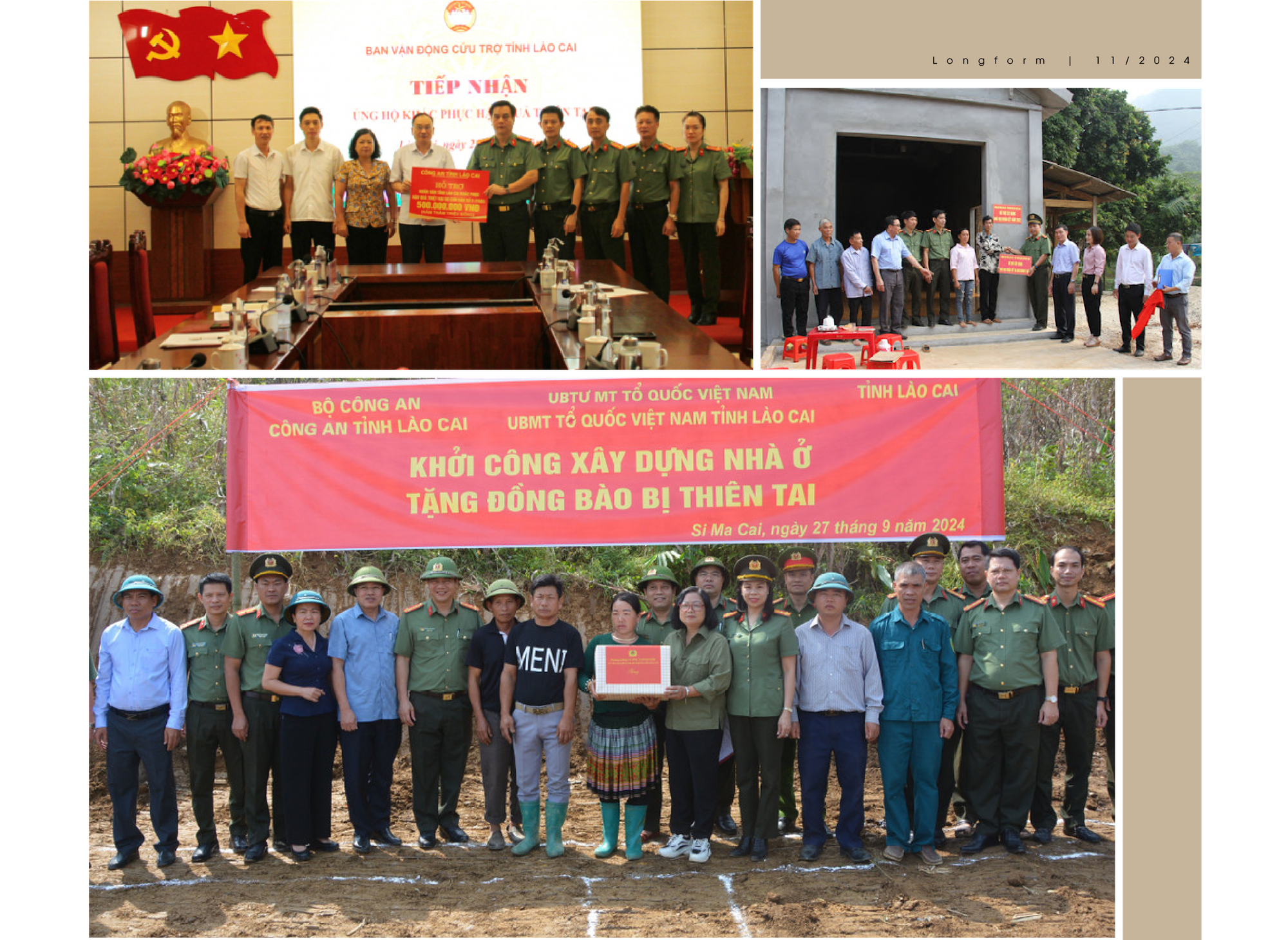 Cùng với đó là chỉ đạo rất kịp thời mang tính của Bộ trưởng Công an Lương Tam Quang, về việc yêu cầu Công an 6 tỉnh miền Bắc gồm: Lào Cai, Yên Bái, Hoà Bình, Hà Giang, Bắc Kạn và Cao Bằng phối hợp với các sở, ban, ngành địa phương triển khai ngay chương trình xây dựng 466 căn nhà cho các hộ dân có nhà bị sập, đổ hoàn toàn do bão, lũ và sạt lở đất.