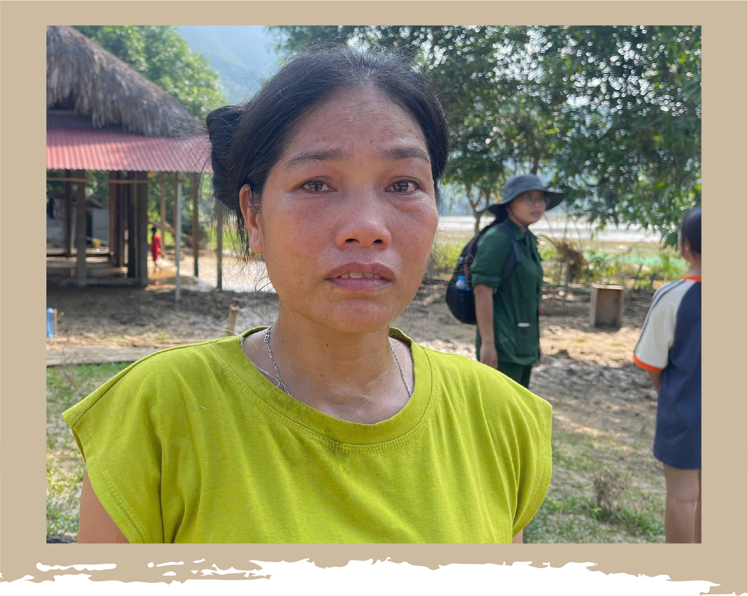 Cũng như ông Chư, gia đình chị Đinh Thị Tươi, một người dân trong bản Bắc Cuông 2 cũng chỉ kịp ôm mấy đứa trẻ chạy lên cao; mọi thứ đã bị nước cuốn trôi hết, từ nhà cửa đến lúa gạo, chẳng còn gì nữa. Nhìn về khu đất trước kia là nơi sinh sống của mình, chị Tươi không kìm được nước mắt. Nỗi lo âu của chị Tươi cũng phản ánh tâm trạng chung của hàng trăm hộ dân bị thiệt hại bởi thiên tai.