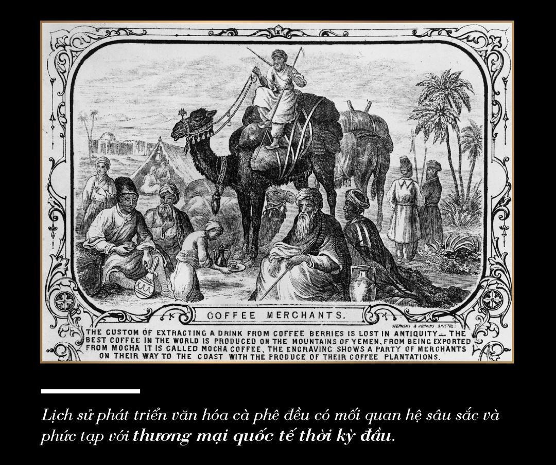Cùng với những bước chân hành hương, những chuyến viễn du thám hiểm và những tuyến đường thương mại quốc tế thời trung cổ như “con đường hương liệu”, “con đường gia vị”, cà phê lan tỏa khắp bốn phương tám hướng. Từ đó, làm nổi bật ý nghĩa của việc pha chế cà phê với những nội hàm triết lý về văn hóa ẩm thực của các nền văn minh khác nhau trong lịch sử nhân loại.