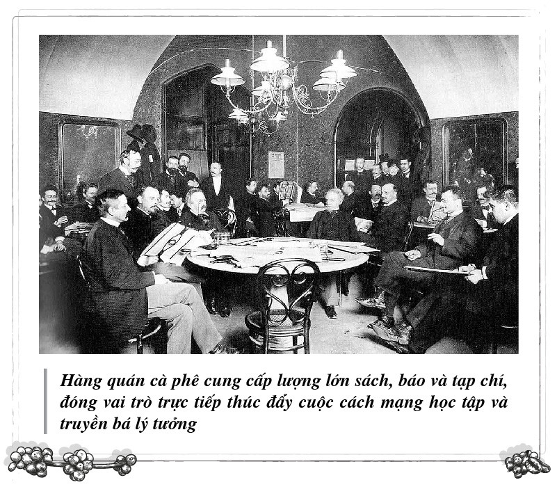 Trở thành trung tâm thông tin, giáo dục đặc biệt, hàng quán cà phê đóng vai trò trực tiếp trong việc thúc đẩy cuộc cách mạng đọc – học tập và truyền bá lý tưởng, hình thành nên những học thuyết khoa học xã hội quan trọng. Quán Café Griensteidl là nơi nhóm văn học Jung-Wien (Viên Trẻ) thành lập nghiên cứu và phát triển văn học hiện đại, tạo nên những ảnh hưởng đáng kể đến hệ tư tưởng đương thời. Trong câu lạc bộ cà phê của Đại học Oxford, Adam Smith đã tạo nên những tác phẩm kinh điển như: The Theory of Moral Sentiments (Lý thuyết về tình cảm đạo đức), The Wealth of Nations (Sự thịnh vượng của các quốc gia), Học thuyết về nền kinh tế tư bản… Quán cà phê Café Landtmann là nơi Sigmund Freud nghiên cứu và sáng lập học thuyết Phân Tâm Học.