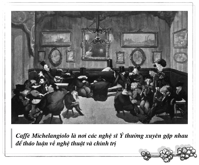 Từ cảm hứng đó, năm 1764, các triết gia vĩ đại Pietro Verri, Alessandro Verri, Cesare Beccaria, Alfonso Longo, Pietro Secchi… thuộc nhóm trí thức khai sáng Ý thành lập tờ tạp chí “Il Caffè” nhằm xây dựng nền tảng trí tuệ cho cộng đồng thông qua những tư tưởng được hình thành bên tách cà phê.