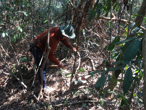 3. Một đồn mười, mười đồn trăm, chỉ từ những lời đồn đại thái quá mà “dây máu người” bị săn lùng quá mức, các toán sơn tràng sục sạo ngày đêm ở khắp núi rừng Bắc-Trung-Nam. Trò chuyện với phóng viên, các lương y vốn tâm huyết với việc sưu tầm, nhân giống, bảo tồn cây thuốc quý như Bùi Tô Phương Thảo (Giám đốc Công ty Hoa Thảo Dược-Bình Dương), lương y Nguyễn Văn Quốc Dinh (An Giang), lương y Nguyễn Trọng Bá (Đồng Nai) đã tiết lộ nhiều thông tin buồn lòng. Theo đó, các núi Thiên Cấm Sơn (An Giang), núi Chứa Chan (Đồng Nai), núi Châu Thới (Bình Dương) từng là thiên đường của dây máu nhưng nay các ngọn núi ấy chẳng còn một mẩu dây thuốc này. “Ngày trước có những dây máu người khổng lồ thân to bằng cùm tay cùm chân người lớn, tuổi hàng chục năm, dược chất rất nhiều. Còn bây giờ, cần dây máu để làm thuốc tìm kiếm khó như tìm vàng vì thảo dược quý này bị săn lùng đến tận gốc rễ” - lương y Bá sầu giọng.