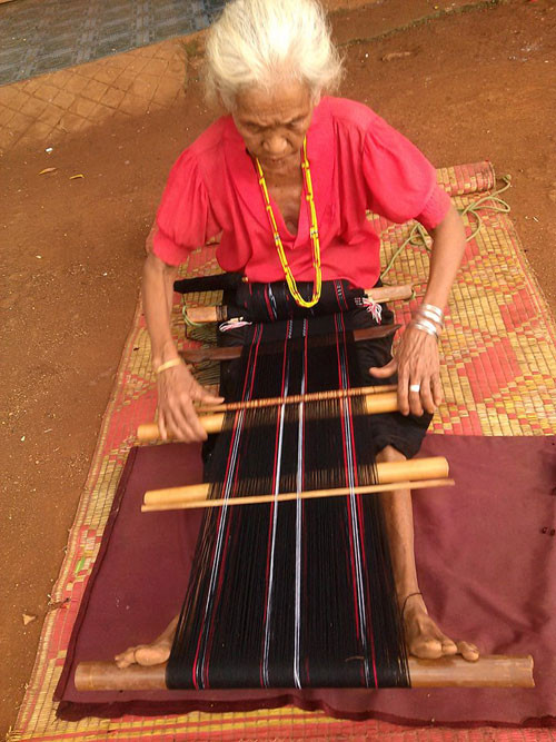 Đi sâu vào Bù Gia Mập, qua các buôn làng người S'tiêng không thiếu nhiều câu chuyện, hình ảnh ly kỳ đậm dấu ấn rừng hoang. Cũng tại thôn Bù Rên 1, tôi gặp cụ bà Thị Ka, ngoài 70 tuổi lúc bà đang ngồi trước nhà dệt khố váy thổ cẩm. Như nhiều cụ ông cụ bà ở tuổi ngoài 70, cụ Thị Ka có đôi dái tai lòng thòng, lỗ tai được nong rộng có thể nhét vào đấy cả một cuộn chỉ.