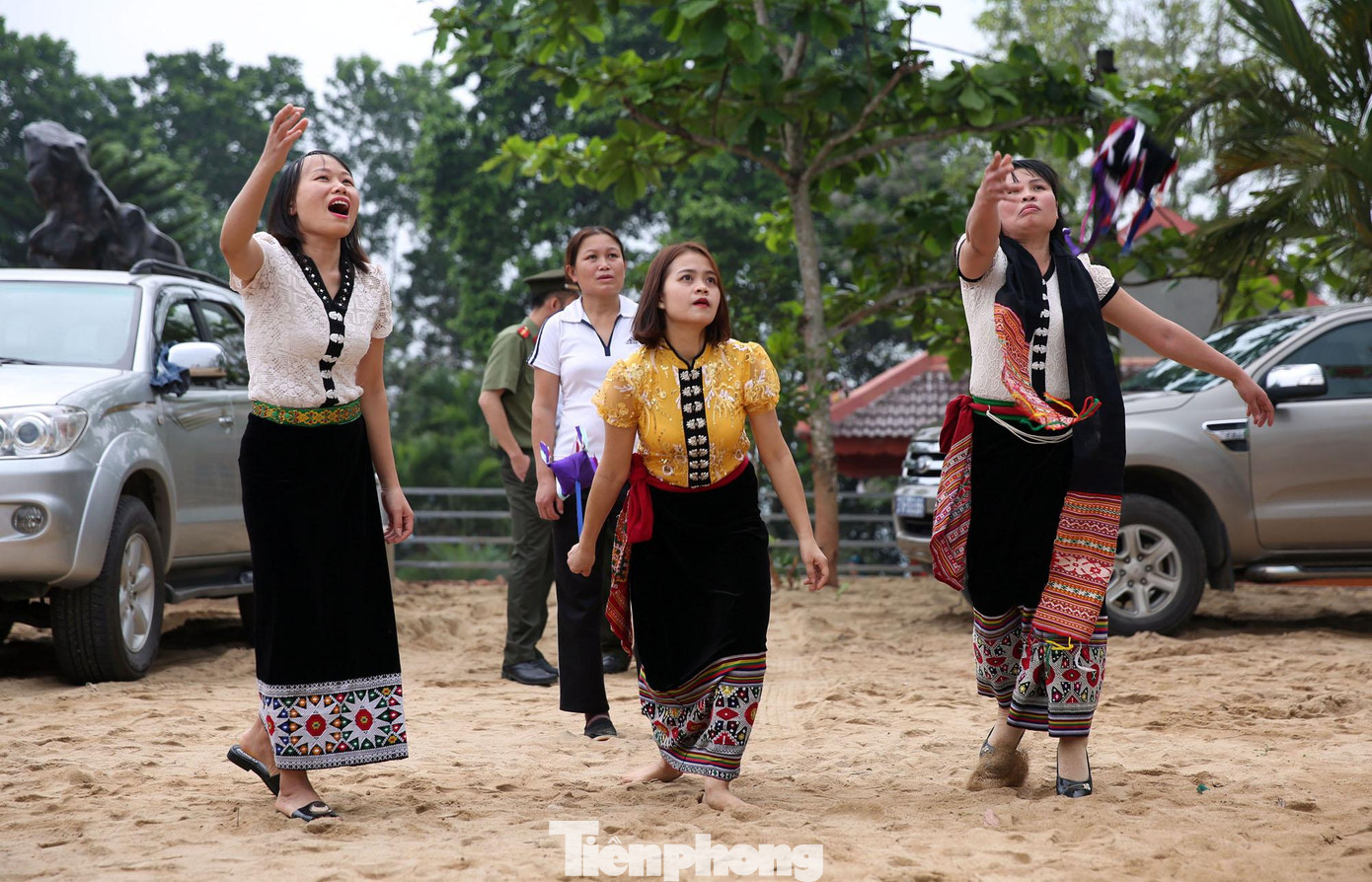 | Bên trong đền chia làm 9 gian thờ với diện tích hơn 138 m2. Kiến trúc hài hòa các vật liệu tạo ra nét đẹp rất riêng của dân tộc Thái. |