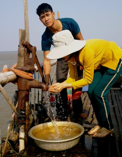 Theo lời kể của anh Minh thì những năm trước khi chưa có nước ngọt, khoảng một tuần anh lại phải vào bờ chở nước ra để sinh hoạt nên phải dè xẻn. Mỗi lần vào bờ là lỉnh kỉnh đủ thứ can lọ đựng nước ngọt mang ra chủ yếu là phục vụ nấu ăn. Còn tắm giặt có khi để dành vào bờ mới dám tắm. Mỗi lần vào, ra mất đứt 6-7 lít dầu máy. Những ngày nước thủy triều lên cao thì không sao, gặp hôm nước kém, thủy triều xuống cạn thì việc đi lại càng thêm vất vả. Bây giờ thì nước ngọt dùng thoải mái mà quanh năm không bao giờ hết, mà nấu ăn cũng cảm giác ngon hơn thứ nước được chở từ đất liền ra.